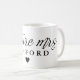Svartvit mugg för framtida företag, med ett söt kalligrafteckensnitt och ett litet svart hjärta. Framtida fru mugg personifierade med ditt nya efternamn ovanför ett litet svart hjärta. Romantiskt kaffe mugg för att bruden med henne snart ska bli efternamn i ett elegant teckensnitt under framtida fru.