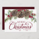 Det här vackra vita och burgiga röda God jul-kortet har klassiskt elegant-skript med kalligrafi, med en vattenfärgad bukett av gröna spritar, gräs-koner och röda hollbär högst upp. På baksidan är en burgomisk vattenfärg struktur. Checka ut samlingen för många matchande produkter, eller kontakta mig genom Zazzle-Chatta om du vill ha ytterligare matchande produkter eller andra färgvägar.