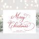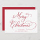 Kort för elegant med helgdag "God jul" som visas i ett snyggtens röda kalligrafiskript. Lägg till personlig hälsning och familj namn i ett vanligt rött bokstäver.