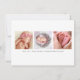 Meddela om din babys ankomst med detta eleganta födelsekort med flera foton. Framsidan visar ditt favorit nyfödda foto på en mjuk grå bakgrund med barnets namn i flytande stil, födelsedetaljer och en delikat utsmyckning med rullar. Baksidan visar tre ytterligare foton med ett "Med kärlek" meddelande från de stolta föräldrarna på en ren vit bakgrund. All text och bakgrundsfärger är helt anpassningsbara för att komplettera dina bilder.