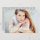 Elegant studenten meddelande med "Student" i ett vitt skript överlägg. Anpassa framsidan av det moderna fotot-studenten-meddelandet med vågräts foto, namn och studenten. Tillkännagivandet går tillbaka till visning av grått och vitt handurtaget örningsben mönster.