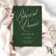Elegant Script Grönt Rehearsal Dinner Inbjudan innehåller ett stort, fetstilt skript och en elegant.