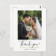 Ett fototack för snyggt bröllop med bröllop-foto, elegant svart och guld-typografi och chic guld-hjärta. Det omvända inslaget i ditt tack till bröllop, namn och returadress. Designad av Thisisnotme©