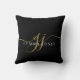 Elegant Script Guld Monogram Initialer Namn Black Kudde