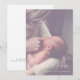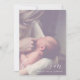 This minimalist Baptism invitation card features a single vertical photo, a "baptism´´ header in the elegant, handwritten script, and your baby´s name in elegant typography at the bottom. The writing is in white, so the dark color background of the photo would be best. The reverse features all details crowned with a simple cross. Customize this minimalist, elegant baptism invitation card by clicking on the ´´Edit´´ button and replacing the template text and photo with your own!