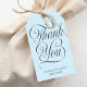 This stylish baby shower favor tag features a sweet light blue background with elegant dark grey calligraphy script and typography. Simply edit the template with your details and choose any options. View coordinating items in our store or in the design collection.