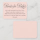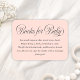 This stylish baby shower enclosure card features a blush pink background, elegant dark grey calligraphy script, and typography. Simply edit the template with your details and choose paper options. Coordinating items are available in our store or the design collection.
