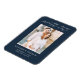 Meddela dina kommande bröllop med denna Elegant Script foto spara datumet magnet. “Spara Datumet” visas i ett modernt vitt kalligrafi-typografi ovanför ditt förlovningsfoto på en marin bakgrund. Anpassa denna tidlösa design med era namn, bröllopsdatum och plats. En vacker souvenir för gästerna att visa på deras kylskåp som en påminnelse om er speciella dag.