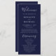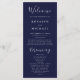 Elegant Script Navy Blue Modern Minimalist Bröllop Ceremony Program Card.