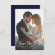Elegant Script Navy Blue Photo Minimalist Bröllop spara datum Card.