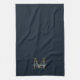 Elegant Script Metallic Navy Blue Gold Monogram kitchen towel