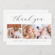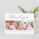 Skapa ditt eget fantastiska nyfödd bebis/barndusch tack för att du har ett fotosamlingskort som tackar vänner och familj för att du hälsar din lilla vän välkommen! Eleganten och den minimalistiska designen har en kollage av tre personliger med foton och typografi över eleganten överst med ditt "tack"-meddelande i ett chic-skript och din baby information i elegant typografi vid grund. På baksidan finns ett anpassade med namn. Gör den unik genom att ersätta texten och bilder genom att klicka på knappen "Anpassa".