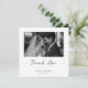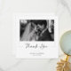 Det här tackkortet fångar den varma glädjen och ömheten från er bröllopsdag. Det svartvita fotot ger det en vacker, tidlös känsla och framhäver på ett enkelt och elegant sätt kopplingen mellan dig och din partner. Den moderna stilen tillför en touch av romantik samtidigt som designen hålls ren och klassisk. Det är ett hjärtligt sätt att dela er tacksamhet med de människor som firade er speciella dag och bidrog till att göra den ofölig.