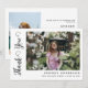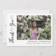 Det här moderna, snyggt, minsta studenten-tack för foto innehåller ett foto på framsidan och ett foto på baksidan. "Tack" skrivet i elegant. Anpassa den med information och två favoritfoton.