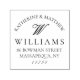 Den här elegant returadress gummi frimärke har din första namn kurvformad på ett smidigt sätt över ditt första monogram i ett vanligt chic-skript, med information om din familj namn och returadress nedanför i vintage av elegant. Anpassa det gifta parets bröllopsstämpel genom att klicka på knappen "Anpassa".