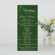 Denna romantiska design har en elegant smaragdgrön bakgrund med detaljer från vigselceremonien och "tack" på framsidan, bröllopspartiet och ett hjärtmonogram på baksidan. Finns i flera färger för att passa din bröllopstema. Designad för att samordna med "Romantic Scroll Hearts & Calligraphy" brölloppskollektion.