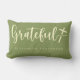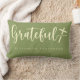 Elegant Script Moss Grönt Cream Gratute Lumbar Pillow - Minimalistisk grönt-lugnande och lugnande färg-palett, feminin design med tacksam ord art. Anpassa med ditt namn.