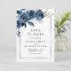 Elegant Script Navy Blue Floral Photo Wedding Spara Datumet