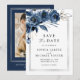 Share your exciting news with this elegant navy blue and silver watercolor floral photo Save the Date card. Featuring a beautiful floral botanical design with soft watercolor details and romantic calligraphy script, this card is the perfect blend of modern style and timeless elegance.