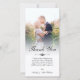 Fotokortets personlig med ditt eget bröllop-foto. Tack för att du skrev ett träkolskript för elegant över ett personligt meddelande till gästerna i bröllop. Kant mellan fotot och text från bröllop mjukas upp med en vit övertoning. Lägg till namnen också!