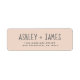 Chic, modern och enkel bröllop-returadressetikett med namn i handskript av icke-svart elegant på en persiko-stoftpastellbakgrund i rosa. Lägg bara till namn och adress. Enbart designad för dig av Lycklig Dolphin Studio. Kontakta oss på happydolphinstudio@outlook.com om du behöver hjälp eller matchande produkter. Vi är lycklig för att hjälpa dig att göra bröllop till den vackraste dagen!