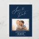 Elegant Script Photo Blue Bröllop spara datum Spara Datumet