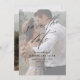 Ett enkelt bröllop spara datum-kort med chic och foto som innehåller information om kalligrafi och klassisk textövertäckning på ett lodrät i porträtt på framsidan. Baksidan har ett utfallsfoto för fullt. Klicka på knappen Redigera om du vill anpassa designen.