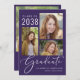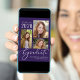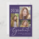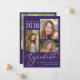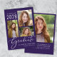Modern lila studenten-meddelande med framsidan med 3 fotokollage, "Student" i ett elegant vitt skript och gradens namn, klassår och skola eller universiteten i ett vanligt vitt bokstäver. På baksidan lägger du till ytterligare ett foto och ett meddelande om personligen.
