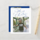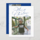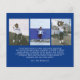 Modern jokertecken med ett enkelt och minimalt format med "God jul" i ett blått skript i eleganten tillsammans med din familj namn ovanför din favoritruta bild. Baksidan har en fotokollage som består av tre lodräna bilder tillsammans med ditt personlig-meddelande.