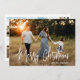 Modern jokertecken för foto med ett enkelt och minimalt format med "God jul" i hälsning i ett vitt skript i eleganten tillsammans med din familj namn. Baksidan har en fotokollage som består av sex kvadratiska bilder.