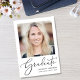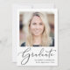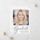 Fira student med det här studenten-meddelandet som visar "Student" i ett elegant-skript och hennes foto och namn, skolår och klassår i enkel modern typografi.