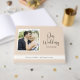 Den här gästen bok i bröllop har elegant skripttext, ett fyrkantigt foto ram på en brant bakgrund.