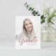 Ett modernt och trendig studenten-fotokort som glädjen i en högskoleexamen eller högskoleexamen med familj och vänner. Ersätt bilderna framtill, baksidan och texten genom att klicka på knappen "Anpassa".