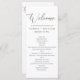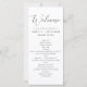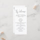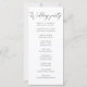 Det här ceremoniprogrammet i elegant bröllop innehåller en förfinad blandning av delikat skript och klassiskt serif typsnitt på en ren vit bakgrund. Perfekt för minimalistiskt, traditionellt eller formellt bröllop. Det här anpassadet är svartvitt och ger firande en sofistikerad beröring. På framsidan visas ceremonin, medan baksidan ger bröllopsfestens medlemmar en personlig och organiserad kontakt som dina deltagare uppskattar.