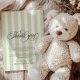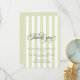 grönt i eleganten och tack för babydusch i vit gender-neutralt- ger ett förfinat och hjärtligt sätt att uttrycka tacksamhet till gästerna. Den här sofistikerade designen har ett mjukt lodrät rand i mjuk grönt och vitt och framhävs av ett snyggt skript och en seriös typografi som på ett vackert sätt balanserar elegans och värme. Rubriken "Tack" i blomningen av kalligrafi ritar öga, medan det personliga budskapet nedan visar uppskattning med uppriktighet och stil. Perfekt för föräldrar som vill ha ett klassiskt och tidlöst tack för att du vill ha ett samordnat babyduschtema. Den här designen utstrålar charm och polerad enkelhet som är perfekt för att hedra tankfulla gåvor och varmt önskemål.