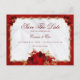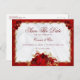 Den här eleganten sparar vykortet med en simulerad röd metallisk och guld smyckad gräns ram accentuerad med ro, med en vit satinbakgrund inuti ram. Ta en titt på resten av eleganten röd och guld blommigt bröllop svit i samlingen.