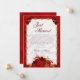 Det här lyxiga bröllop-annonskortet för blommigt har ett skript för elegant, röd ros som dekorerar ett guld-filigree ram och en vit satin och faux röd metallisk bakgrund. Checka ut samlingen för matchande produkter, eller kontakta mig genom Zazzle-Chattan för det speciella objekt som du är tittar för.