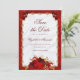 Elegant Script Red Guld Ro Blommigt Bröllop Spara Datumet