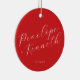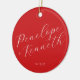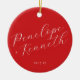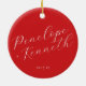 Elegant Script Red jul Bröllop Personlig Julgransprydnad Keramik