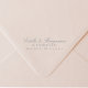 An elegant script return address wedding self‑inking stamp that adds a refined finishing touch to your envelopes, bringing graceful lettering and timeless sophistication to your correspondence. Available in black and white ink and a variety of additional colors to match your wedding aesthetic!