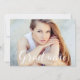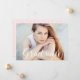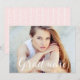 Elegant studenten meddelande med "Student" i ett vitt skript överlägg. Anpassa framsidan av det moderna fotot-studenten-meddelandet med vågräts foto, namn och studenten. Tillkännagivandet återgår till visningen som en rosa och ett vitt, handtaget örningsben mönster.