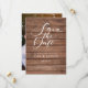 Elegant Script Rustic Wood Photo Bröllop Spara Datumet