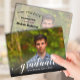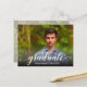 "student" i ord i ett vitt skript i elegant tillsammans med student namn och klassår SAVE DATE-vykort för din Studentfest eller Studenten Ceremony. Placera fotot på framsidan - vi har lagt till ett svart övertäckningsmaterial vid grund så att "student" kan läsas över fotot. Lägg till samma eller annorlunda foto på baksidan av adress - vi har lagt till ett mjukt fotoöverlägg till bakbilden för att göra informationen enklare att läsa. MER design i vår samling.