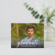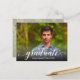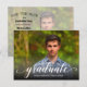 "student" i ord i ett vitt skript i elegant tillsammans med student namn och klassår SAVE DATE-vykort för din Studentfest eller Studenten Ceremony. Placera fotot på framsidan - vi har lagt till ett svart övertäckningsmaterial vid grund så att "student" kan läsas över fotot. Lägg till samma eller annorlunda foto på baksidan av adress - vi har lagt till ett mjukt fotoöverlägg till bakbilden för att göra informationen enklare att läsa. MER design i vår samling.