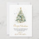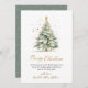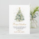 Modern Elegant Calligraphy Script Julgran non Photo-julkort. Det här festliga, enkla, minimalistiska Helgdagskortet för julen har en vattenfärg julgran med dekoration guld och konetti och en "God jul"-hälsning som är skriven i en fin teckenstil i guld och vitt. På motsatt sida, vid golden glitter snö eller vid mousserande guld konetti mot dammig grönt bakgrund. Det här julkortet för festlig Anpassningsbar Personlig är ett underbart sätt att påminna nära och kära om att du tänker på dem den här vinterJulhelgen.