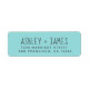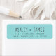 Chic, modern och enkel bröllop-returadressetikett med namn i handskript i off-black elegant på en turkosblå bakgrund. Lägg bara till namn och adress. Enbart designad för dig av Lycklig Dolphin Studio. Kontakta oss på happydolphinstudio@outlook.com om du behöver hjälp eller matchande produkter. Vi är lycklig för att hjälpa dig att göra bröllop till den vackraste dagen!