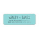 Chic, modern och enkel returadressetikett för bröllop med namn i handskript för vit elegant på en turkosblå bakgrund. Lägg bara till namn och adress. Enbart designad för dig av Lycklig Dolphin Studio. Kontakta oss på happydolphinstudio@outlook.com om du behöver hjälp eller matchande produkter. Vi är lycklig för att hjälpa dig att göra bröllop till den vackraste dagen!