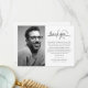 Show your heartfelt appreciation to those who have stood by you during a difficult time with our elegant funeral thank you cards. Featuring a custom photograph of your loved one on a clean white backdrop, the words 'THANK YOU' in beautiful script, and customizable space for your personal message, name, and date/s. These cards are the perfect way to express your gratitude to friends and family. Every detail thoughtfully crafted to honor the memory of your loved one and convey your sincerest thanks.