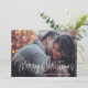 Skicka ut helgdag med det här moderna platta julkortet med en enkel design med ord "God jul" i ett tunt, vitt skript i elegant, tillsammans med namn och året före ditt favoritfoto. Baksidan har ett rött holly mönster.