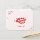 Fira kärlek och tillgivenhet med vårt "Elegant Script Valentine Day Postcard". Det här vackert designade kortet har en slående svart bakgrund som gör att den röda kursiva hälsningen "Glad Alla hjärtans dag" verkligen dyker upp. Det handskrivna stil-manuset har förbättrats med små, hjärtformade blommor, ge det personligt och romantiskt. Kortet gränsas av en härlig uppsättning hjärtan i olika nyanser av rosa och rött, som verkar kaskad längs hörnen, vilket ökar djupet och rörelsen i designen. En fin, men charmerande dekorativ inslag sitter vid grund - en linje med två hjärtan centrerad, som ekar värmen och känslan av tillfälle. Oavsett om du uttrycker kärlek till en partner, delar kärlek med en vän eller skickar ett tankeväckande meddelande till en familjemedlem, är det här vykortet ett elegantens val för att förmedla din Alla hjärtans dag önskemål.